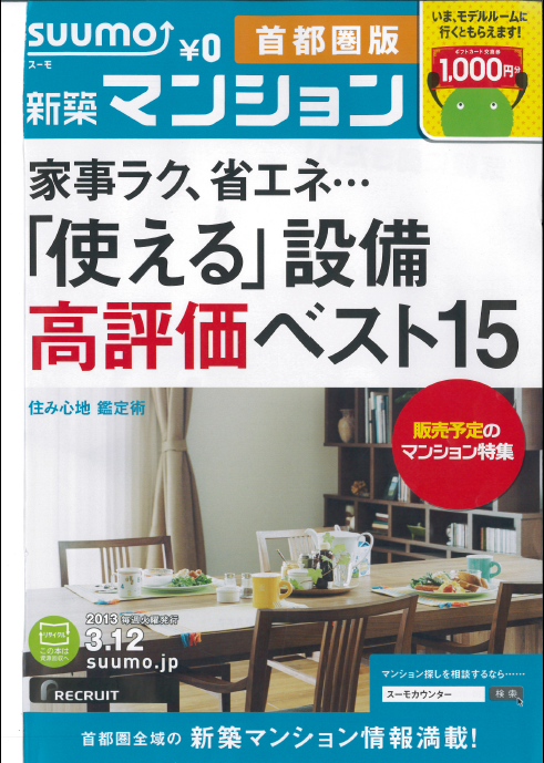 新築マンションの情報雑誌SUUMOの首都圏版(2013.3.12)に恒例の設備ランキングが掲載されました。